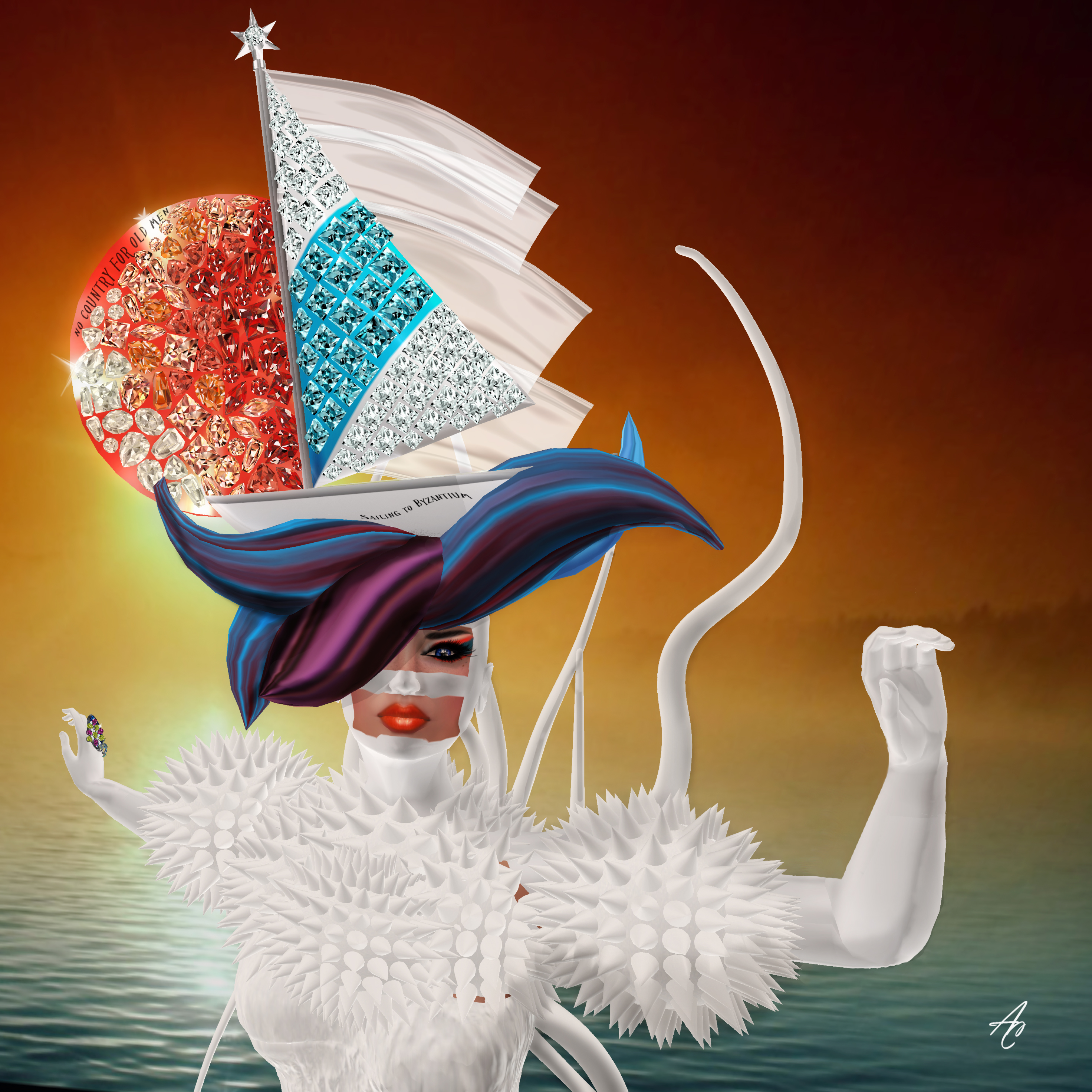 I’ve often wondered what inspires the creativity of a great mind like the brilliant designer behind Chop Zuey Couture Jewellery, Belle Roussel. Her recent fascinator piece called, “Sailing to Byzantium” is a creative reflection of the poem by the same name penned by William Butler Yeats. This extraordinary fascinator is a masterpiece of beauty, creativity and sophistication. Only a woman of profound intellect and sophistication could design such a thought-provoking masterpiece in honor of the poem behind its namesake.