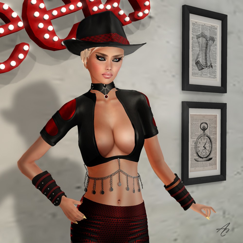 Have you been to The Instruments Event yet? If not, I highly recommend checking it out. Each month, some of SL’s best designers gather at this event to feature their newest designs. One of my favorite new designers is Wicca Merlin of Wicca’s Wardrobe, who has a flare for thinking outside the box when it comes to haute couture styling and designs. This month, the designers were asked to create designs inspired by a fashion icon. Wicca drew inspiration from Madonna’s 1980’s fashion sense in her latest creation that I’m wearing.