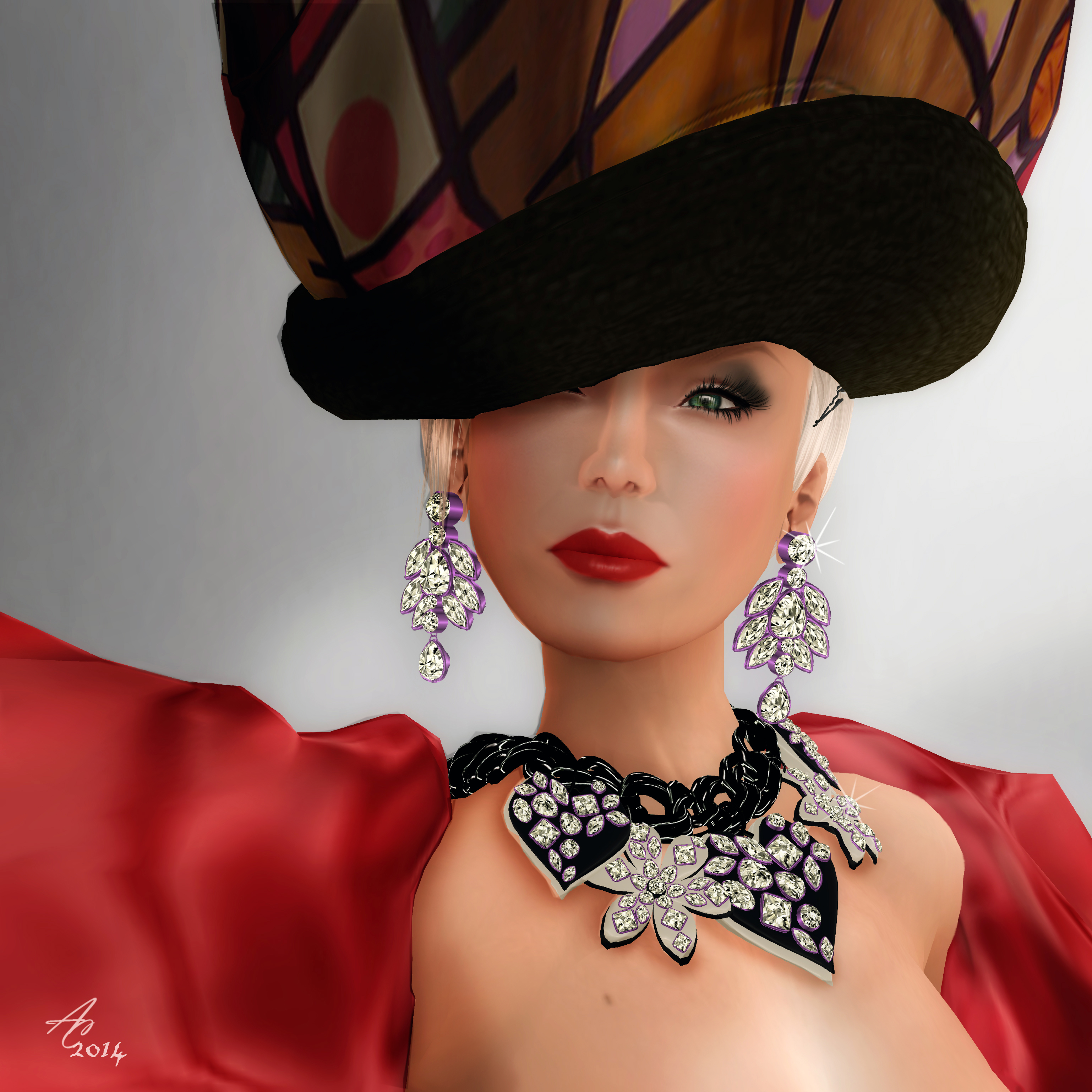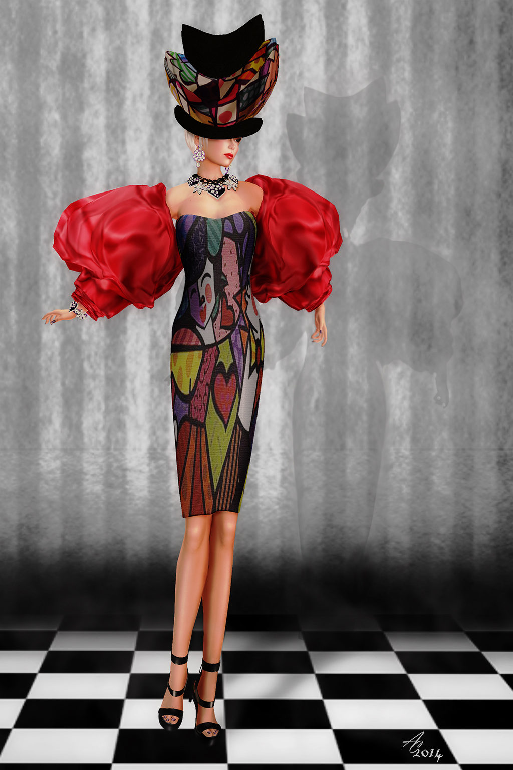 There are four sets of absolutely stunning outfits with matching jewellery in the Romero Britto Collection. In this blog, I’m featuring the Por una Cabeza set. And guess what! The jewellery and the sleeves each come with their own texture changing HUD. In fact each set in the collection has texture changing HUDs for both the outfits and the jewellery.  (You know how I just love versatility!)