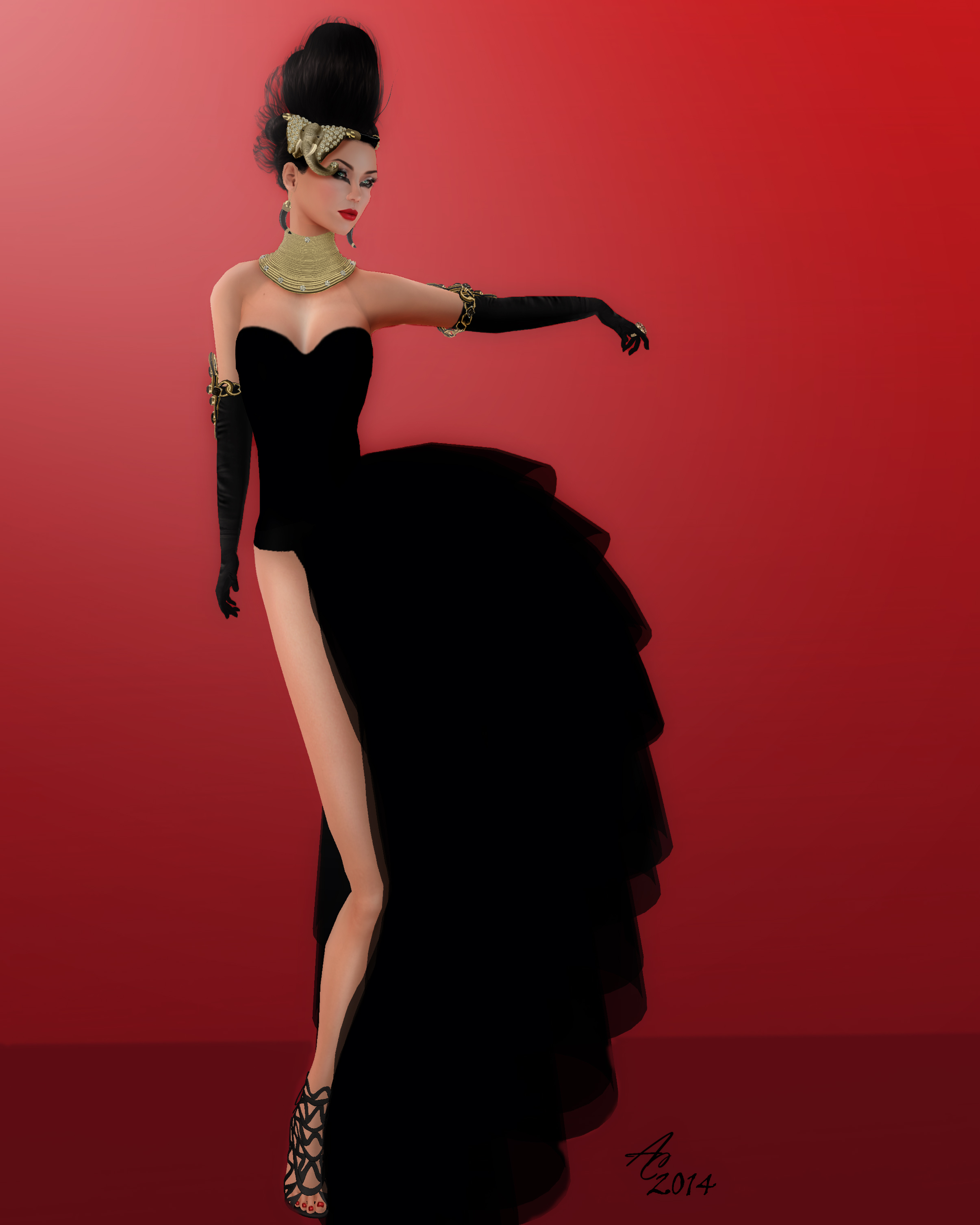 I love to add a hint of drama to my styling. So I chose the the edgy “Poona” gown with a half skirt from Sascha’s Designs to compliment the fabulous jewelery. Long live the elephant, I say!