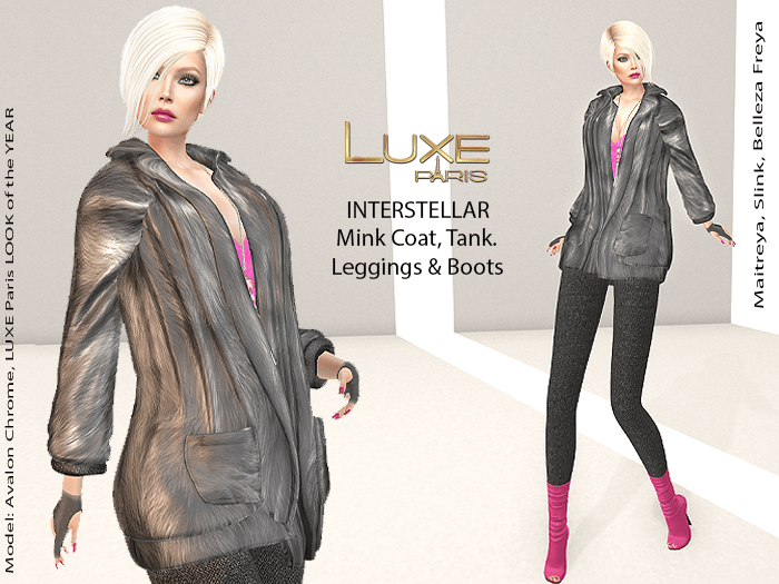 LUXE Paris will be gifting this gorgeous INTERSTELLAR outfit that includes a Mink Coat (don’t worry, no animals were harmed), tank top, leggings and these adorable boots!
